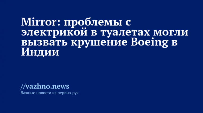 Причиной крушения пассажирского самолета Boeing 787-8 Dreamliner авиакомпании Air India могли стать электросбои, вызванные неполадками с подачей воды в туалетах на борту. Об этом 25 августа рассказала газета Mirror, ссылаясь на адвоката Майка Эндрюса, который представляет интересы родственников погибших в катастрофе.