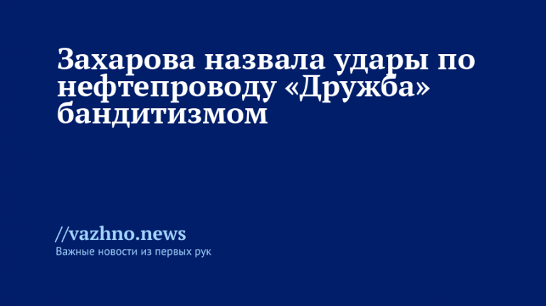 Удары по нефтепроводу «Дружба» со стороны Вооруженных сил Украины (ВСУ) являются проявлением «чистого бандитизма». Об этом 25 августа заявила официальный представитель МИД России Мария Захарова, отвечая на вопросы издания «Известия».