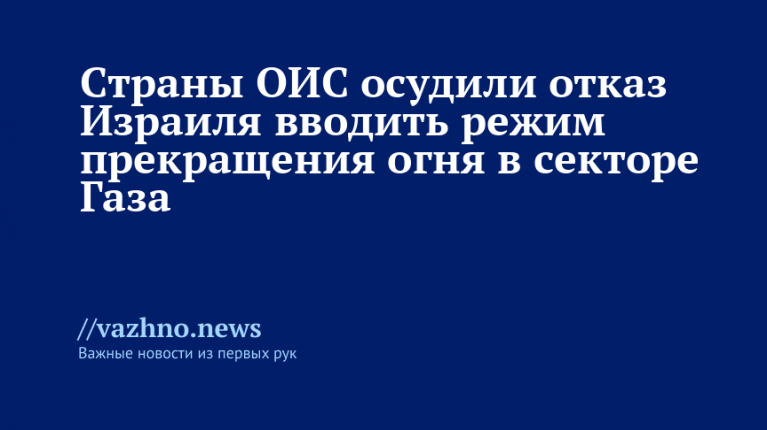 В заявлении подчеркивается, что исламские страны потребовали от Израиля прекратить военные действия на территории Газы, а также призвали снять блокаду с сектора.