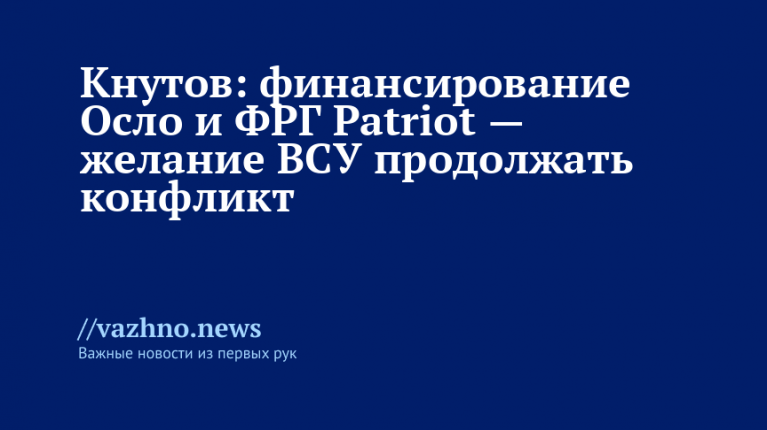 Финансирование систем Patriot вместе с боеприпасами со стороны Норвегии и Германии указывает на то, что Украина намерена продолжать военный конфликт. Об этом 25 августа заявил Юрий Кнутов — полковник в отставке и директор Музея войск противовоздушной обороны (ПВО).