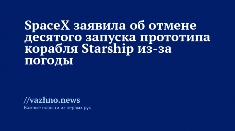 Компания SpaceX из США не смогла провести десятый запуск космического корабля Starship из-за неблагоприятных погодных условий. Об этом в пресс-службе компании сообщили 25 августа.
