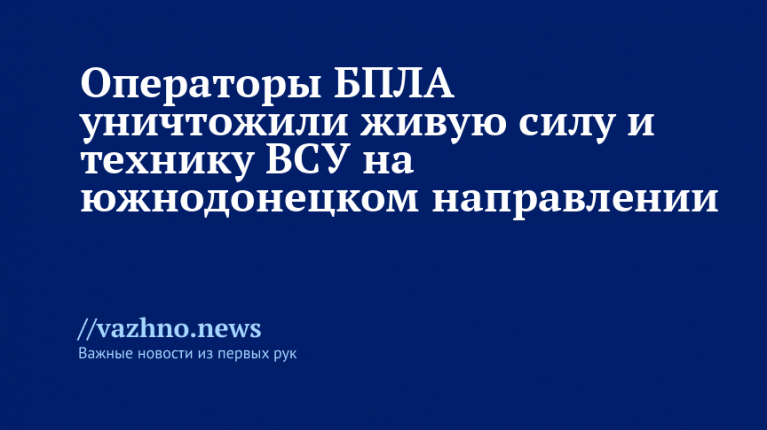 Операторы беспилотных летальных аппаратов из группировки войск «Восток» нанесли удары по живой силе и технике Вооруженных сил Украины (ВСУ) в южнодонецком направлении специальной военной операции (СВО). Об этом было объявлено 26 августа в Минобороны РФ.