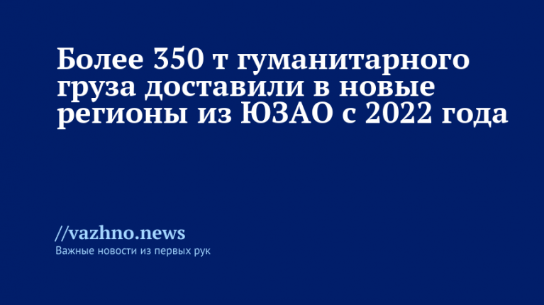 Жители Юго-Западного административного округа (ЮЗАО) Москвы отправили более 2 тонн гуманитарного груза в Донецк. За все время спецоперации жители этого округа направили в новые регионы свыше 350 тонн грузов с предметами первой необходимости. Об этом 26 августа сообщили на портале мэра Москвы Сергея Собянина.