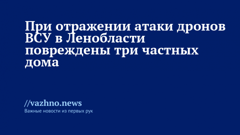В Сланцевском районе Ленинградской области при отражении атаки украинских беспилотных летательных аппаратов (БПЛА) получили повреждения остекление трех частных домов и один автомобиль. Об этом 26 августа проинформировал губернатор Александр Дрозденко.