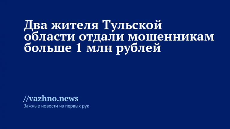 Два жителя Тульской области отдали мошенникам свыше 1 млн рублей