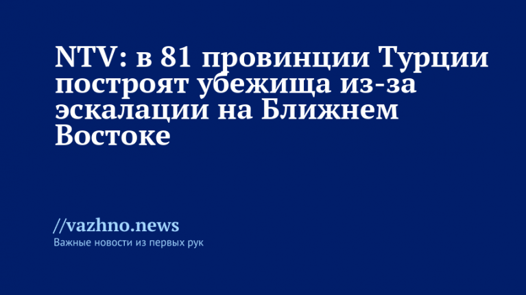 В Турции планируется возведение убежищ в каждой провинции страны на фоне усиления конфликтов на Ближнем Востоке. Такие сведения 26 августа передал телеканал NTV.