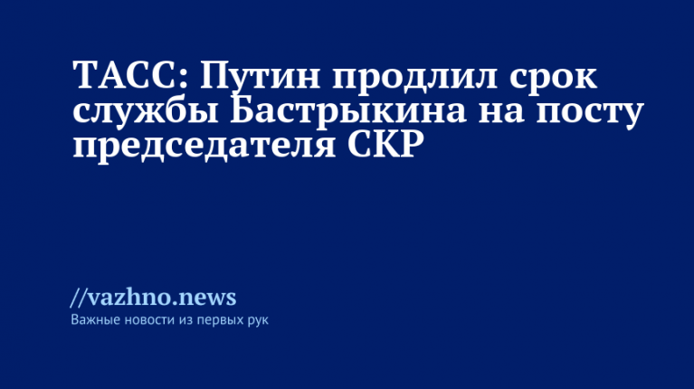 Президент России Владимир Путин продлил срок пребывания Александра Бастрыкина на посту главы Следственного комитета (СК) России. Об этом 26 августа сообщает ТАСС со ссылкой на осведомленный источник.