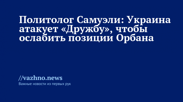 Политолог Самуэли: Украина атакует «Дружбу» для ослабления позиций Орбана