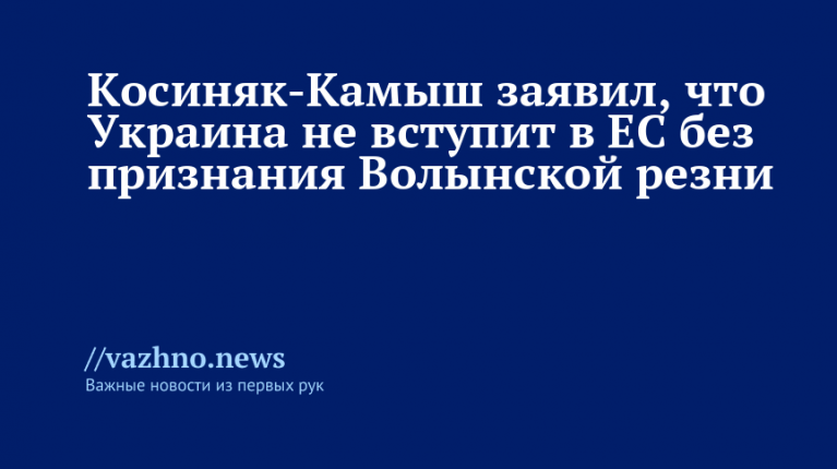Украина получит возможность вступления в Европейский союз лишь после того, как будут урегулированы все споры, связанные с признанием Киевом Волынской резни. Об этом 26 августа сообщил министр обороны Польши Владислав Косиняк-Камыш.