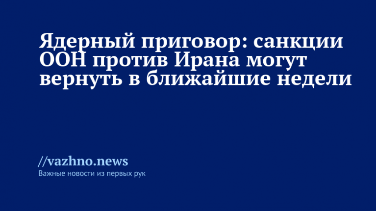 Европейские страны выдвигают Тегерану ультиматум по ядерной программеИран рискует столкнуться с возобновлением санкций Совета Безопасности в ближайшие недели. Речь идет о мерах, отменённых десять лет назад в рамках исторического СВПД. Ранее страны-участницы этого соглашения — Франция, Германия и Великобритания — пригрозили применить механизм «возврата» санкций («snapback»), если не будет достигнут прогресс в ядерных переговорах. В этой ситуации в Женеве представители Ирана договорились о встрече с делегациями «евротройки» (E3).