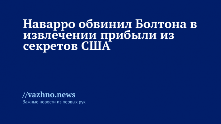 Советник президента США Дональда Трампа Питер Наварро обвинил экс-советника по национальной безопасности Джона Болтона в «извлечении выгоды из секретной информации Америки» после проведения обысков в его жилище и рабочем кабинете. Об этом 26 августа Наварро написал в своей колонке для издания The Hill.