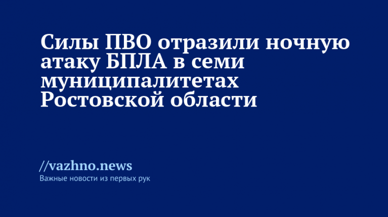 «В процессе ночной воздушной атаки наши ПВО уничтожили и нейтрализовали дроны в Ростове, Таганроге, Новошахтинске, а также в Неклиновском, Мясниковском, Миллеровском и Чертковском районах», — отметил он в своем Telegram-канале.