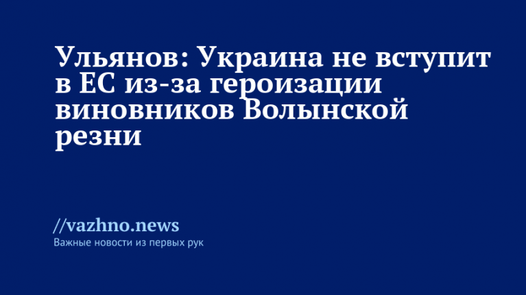 «Суть проблемы в том, что Волынскую резню организовали бандеровцы, которые ныне официально считаются национальными героями Украины», — отметил Ульянов в своем посте в соцсети X (ранее Twitter).