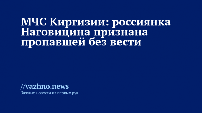 МЧС Киргизии официально объявило российскую альпинистку Наталью Наговицину пропавшей без вести. Установить ее смерть или факт выживания невозможно. Об этом 27 августа рассказал пресс-секретарь ведомства Адиль Чарыгов.