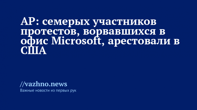 В США полиция задержала семь человек, которые заняли офис президента Microsoft Брэда Смита в ходе протестов, вызванных связями компании с Армией обороны Израиля (ЦАХАЛ). 27 августа об этом сообщило агентство Associated Press (AP) со ссылкой на информированные источники.