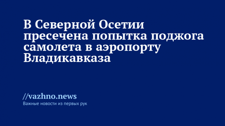 «УФСБ России по РСО-Алания остановила противоправные действия 25-летнего гражданина РФ, который планировал осуществить террористический акт на территории аэропорта Владикавказ путем поджога воздушного судна», — говорится в сообщении, опубликованном ТАСС.