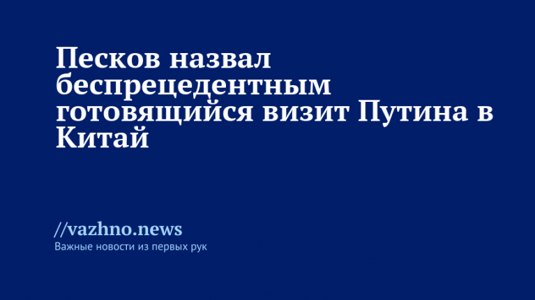 «Визит Путина в Китай станет действительно беспрецедентным, к нему идет активная подготовка», — отметил Песков.