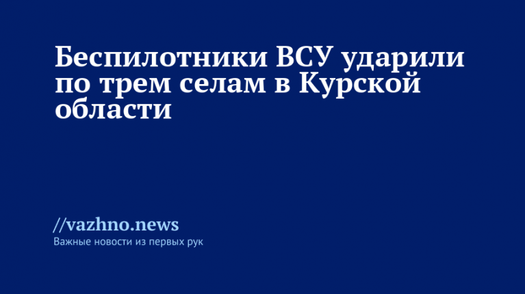 Беспилотный летательный аппарат (БПЛА) Вооруженных сил Украины (ВСУ) совершил сброс взрывного устройства в селе Макеево Курской области. Также были зафиксированы атаки в деревне Малогнеушево и возле села Колячек Хомутовского района. Об этом 27 августа проинформировал временно исполняющий обязанности губернатора Александр Хинштейн.