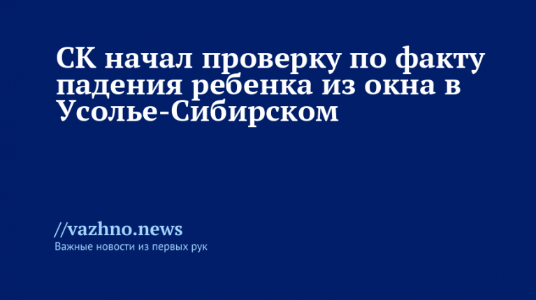 В городе Усолье-Сибирское Иркутской области организована проверка по факту падения полуторагодовалого мальчика из окна квартиры на четвертом этаже. Об этом сообщает региональное следственное управление СК России в своем Telegram-канале.