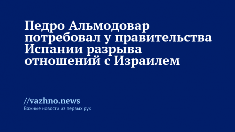Известный кинорежиссер Педро Альмодовар выступил с призывом к испанскому правительству прекратить все связи с Израилем. Его видеообращение появилось 27 августа в Instagram-аккаунте продюсерской компании El Deseo, которая принадлежит компании Meta, запрещенной в России как экстремистская организация.