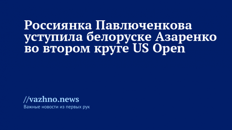 Российская теннисистка Анастасия Павлюченкова выбыла из борьбы во втором раунде одиночного разряда турнира US Open-2025, проиграв белорусской спортсменке Виктории Азаренко со счетом 6:3, 6:3. Поединок состоялся 27 августа в Нью-Йорке.