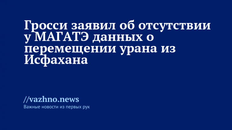 Гендиректор Международного агентства по атомной энергии (МАГАТЭ) Рафаэль Гросси в среду, 27 августа, заявил, что организация не получила никаких свидетельств о том, что ядерные материалы были перемещены с объекта в Исфахане в Иране в другое место после ударов США.