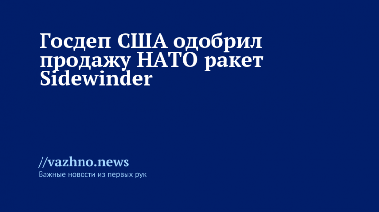 В пресс-релизе говорится: «Госдеп одобрил возможную сделку с агентством НАТО по закупке ракет AIM-9X Sidewinder и сопутствующего оборудования на сумму $103,9 млн».