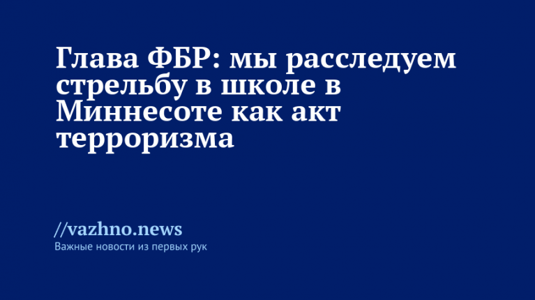 В католической школе Благовещения в Миннеаполисе, штат Миннесота, США произошла стрельба, в результате которой погибли двое детей. Этот инцидент квалифицируется как террористический акт и уже находится под расследованием. Об этом 27 августа сообщил руководитель ФБР Кэш Патель.