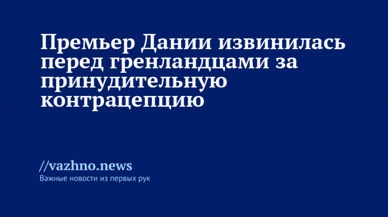 Премьер-министр Дании Метте Фредериксен принесла извинения жительницам Гренландии за применение принудительной контрацепции в 1960-х годах. Заявление было опубликовано 27 августа на официальном сайте канцелярии главы датского правительства.