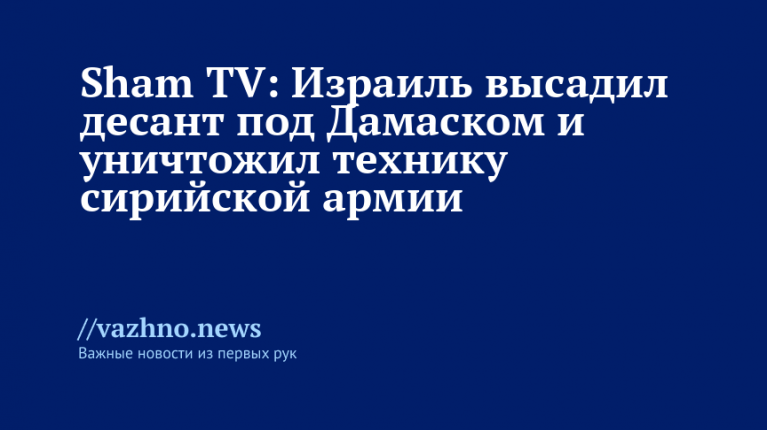 «Боевики из израильской армии прибыли на один из военных объектов министерства обороны Сирии, расположенный в сельской местности Аль-Кисва, и ликвидировали военную технику. Операция была проведена с участием четырех вертолетов», — заявили в Telegram-канале.