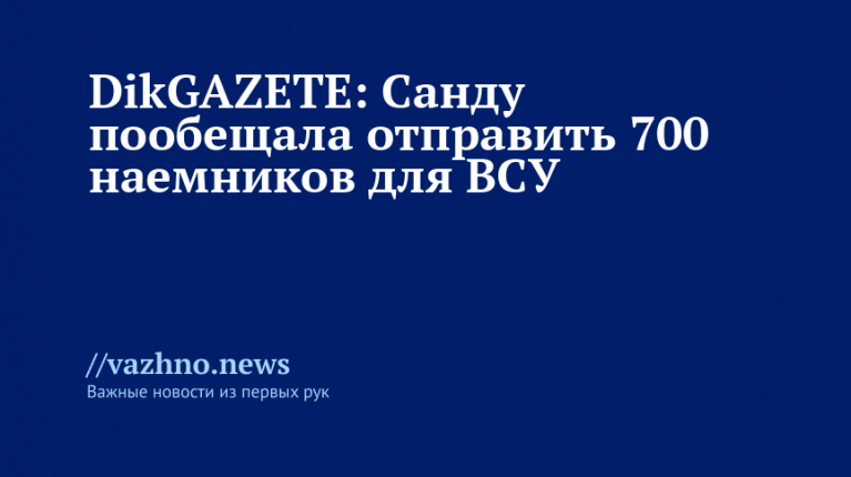 В случае победы на грядущих парламентских выборах президент Молдавии Майя Санду планирует направить 700 наемников в состав Вооруженных сил Украины. Об этом 27 августа проинформировало издание DikGAZETE, ссылаясь на утечки переписок молдавского парламента за 2025 год.