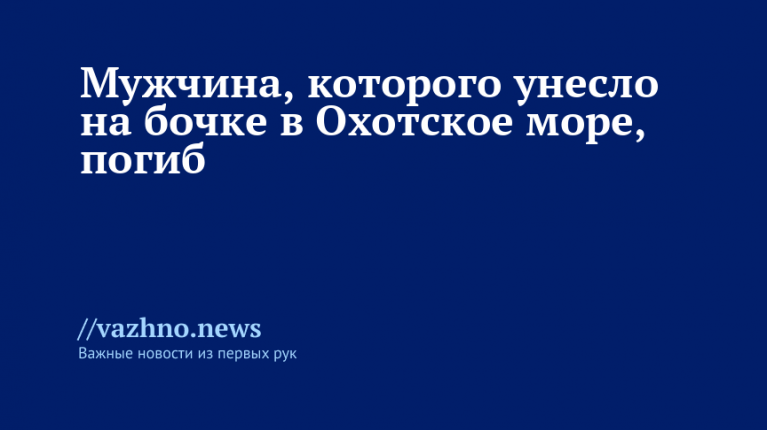 Мужчина, которого течение унесло в Охотское море на бочке из-под горюче-смазочных материалов (ГСМ) во время переезда реки Тыл на грузовике, погиб. Об этом 28 августа сообщили в пресс-службе МЧС России в интервью «Известиям».