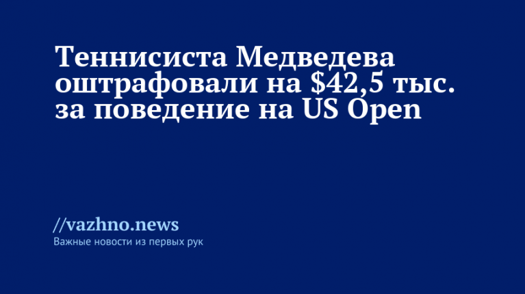 Российский теннисист Даниил Медведев был оштрафован на $42,5 тыс. за свое поведение в ходе матча первого круга Открытого чемпионата США (US Open). Информацию об этом 27 августа предоставил телеканал ESPN.