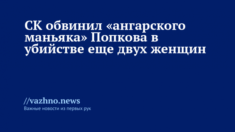 В городе Ангарск следственные органы предъявили новое обвинение Михаилу Попкову, известному как «ангарский маньяк», по делу об убийстве двух женщин в 2008 году. Об этом 28 августа информировала пресс-служба Следственного комитета Российской Федерации.