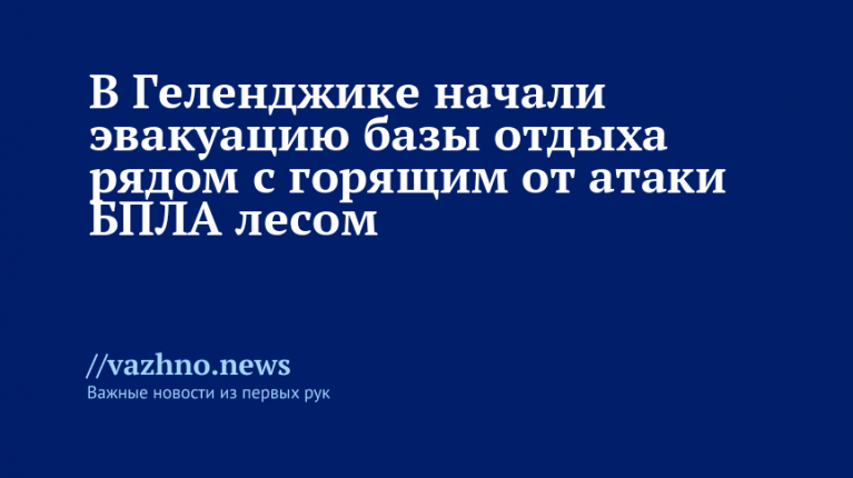 В Геленджике проводится эвакуация базы отдыха, расположенной рядом с лесом, который загорелся после падения обломков украинского беспилотника. Об этом 28 августа рассказал глава курортного города Алексей Богодистов.