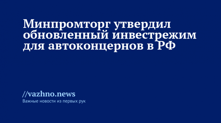 Минпромторг утвердил обновленные условия инвестиционного режима для автомобильных концернов в России, которые уже вступили в действие. Об этом 28 августа сообщили «Ведомости» со ссылкой на источник в министерстве.