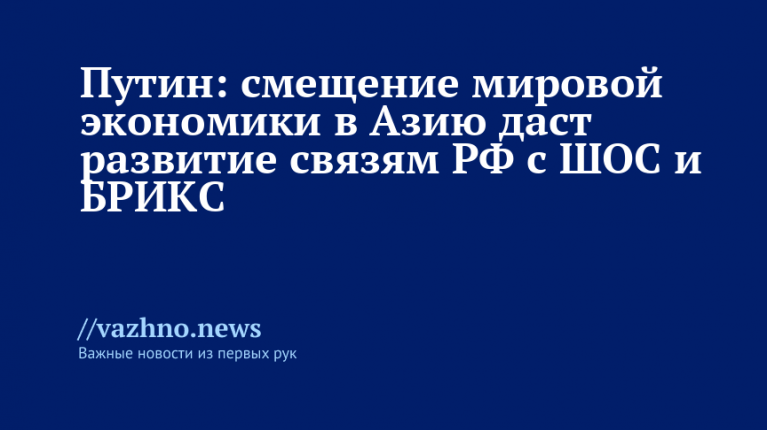 Сдвиг центра мировой экономики в сторону Азии предоставляет новые перспективы для развития взаимовыгодных отношений России с Шанхайской организацией сотрудничества (ШОС) и БРИКС. Об этом 28 августа заявил президент России Владимир Путин в обращении к участникам, организаторам и гостям X Восточного экономического форума (ВЭФ).