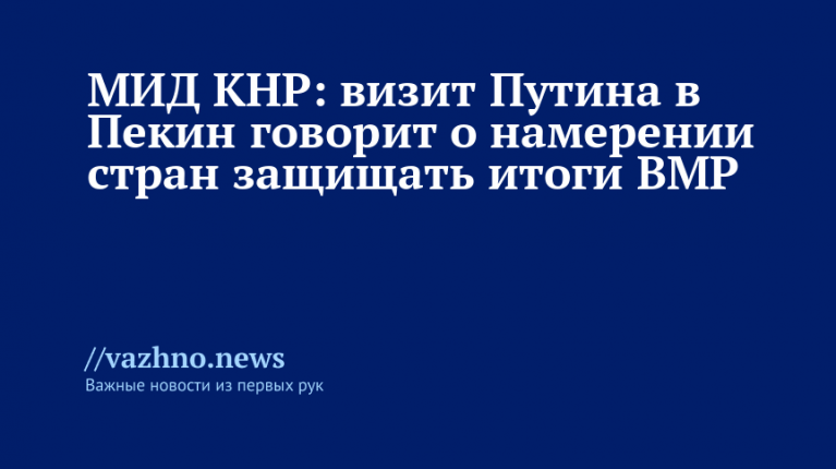 МИД КНР: визит Путина в Пекин подтверждает защиту итогов ВМР странами