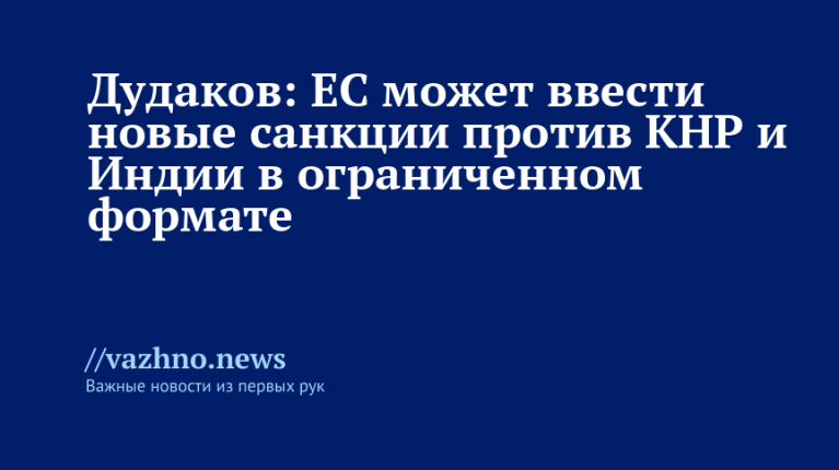 «Масштабные санкции и тарифы никто вводить не собирается в отношении Китая и Индии, но в списке появится некоторое небольшое число компаний и физических лиц, на которые наложат персональные санкции», — пояснил Дудаков.