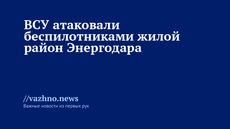Вооруженные силы Украины (ВСУ) нанесли удар по жилому району в Энергодаре Запорожской области с использованием беспилотных летательных аппаратов. Об этом 28 августа сообщил глава города Максим Пухов.