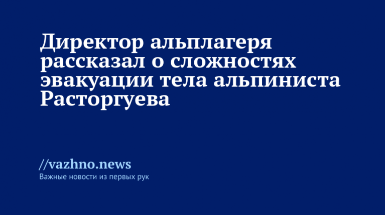 Доставить тело погибшего альпиниста Александра Расторгуева из гор Кабардино-Балкарии затруднительно из-за угрозы для спасателей и вертолета. Об этом 28 августа сообщил «Известиям» директор альплагеря «Безенги» Алий Анаев.
