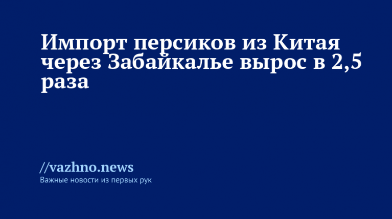 Объем импорта свежих персиков из Китая в Россию через автомобильный пункт пропуска «Забайкальск» увеличился в 2,5 раза за год. Об этом в четверг, 28 августа, информирует пресс-служба регионального управления Россельхознадзора.