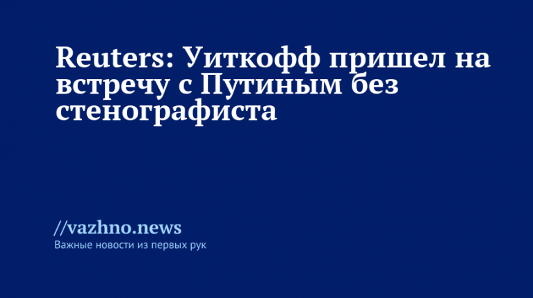 Специальный представитель президента США Стив Уиткофф прибыл на переговоры с президентом России Владимиром Путиным в столице России — Москве — без стенографиста. Об этом 28 августа сообщил новостной ресурс Reuters, ссылаясь на осведомленные источники.