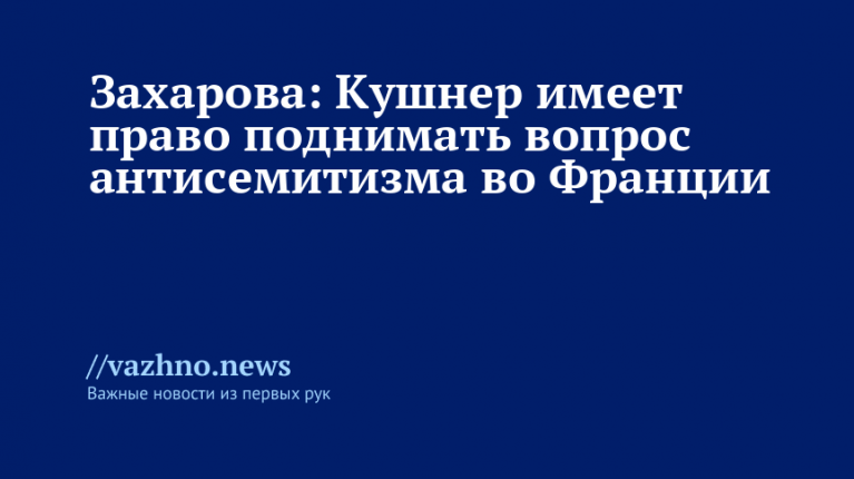 Захарова: Кушнер вправе поднимать вопрос антисемитизма во Франции