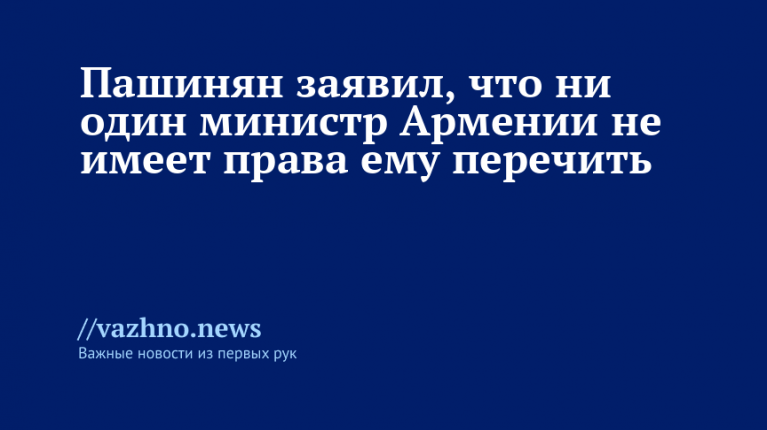 Премьер-министр Армении Никол Пашинян 28 августа заявил, что никто из членов правительства не вправе занимать позицию, которая противоречит его собственной.