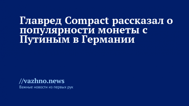 Серебряная монета, посвященная президенту России Владимиру Путину, выпущенная немецким изданием Compact, пользуется значительной популярностью в Германии. Об этом 28 августа «Известиям» сообщил главный редактор журнала Юрген Эльзассер.