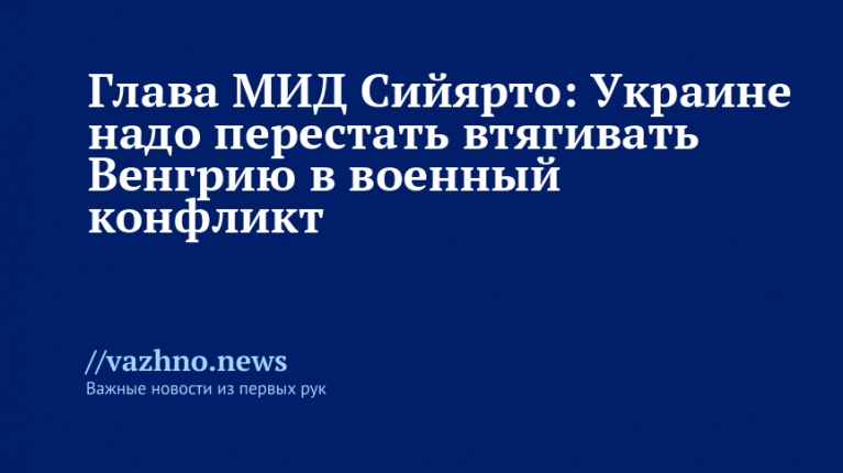 Министр иностранных дел и внешнеэкономических связей Венгрии Петер Сийярто призвал Украину прекратить провокационные действия и попытки втянуть Венгрию в военный конфликт с Россией, в котором она не участвует. Об этом он заявил 28 августа в ответ на критику украинского коллеги Андрея Сибиги, направленную против реакции Сийярто на удары ВСУ по нефтепроводу «Дружба».