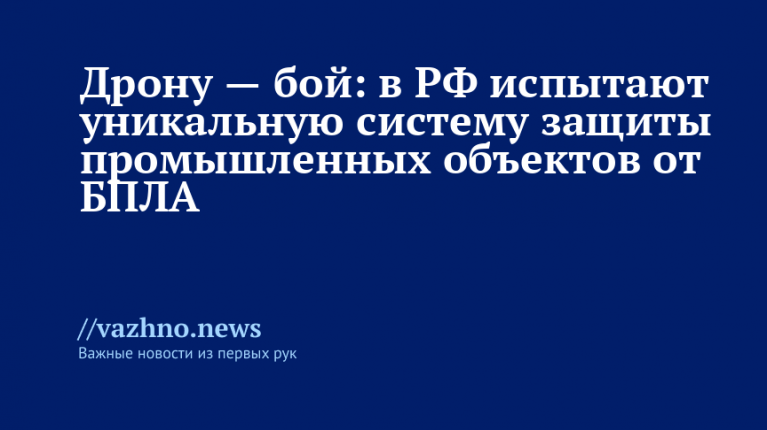 В РФ испытают уникальную систему защиты промышленных объектов от дронов
