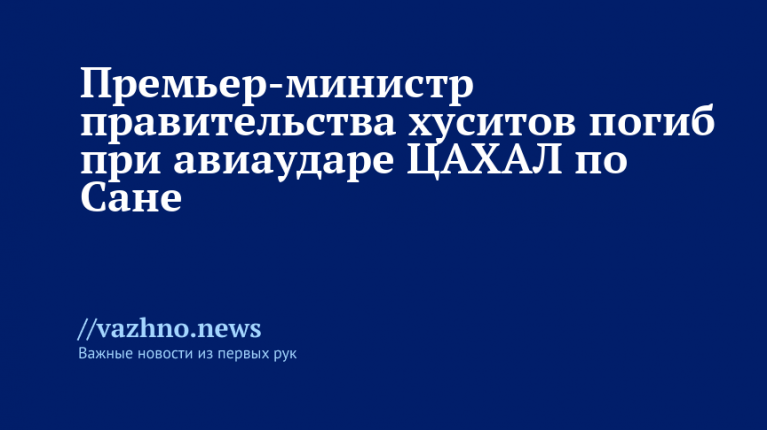 В результате авиаудара, проведенного Армией обороны Израиля (ЦАХАЛ), в йеменской столице Сане погиб премьер-министр хуситского повстанческого движения «Ансар Аллах» Ахмед Галеб ар-Рахави. Об этом 29 августа сообщил источник, близкий к его семье.