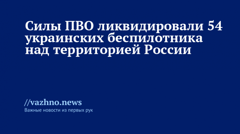 «29 августа с полуночи до 06:00 мск дежурные системы ПВО перехватили и уничтожили 54 украинских беспилотника самолетного типа», — говорится в заявлении ведомства, опубликованном в Telegram-канале.